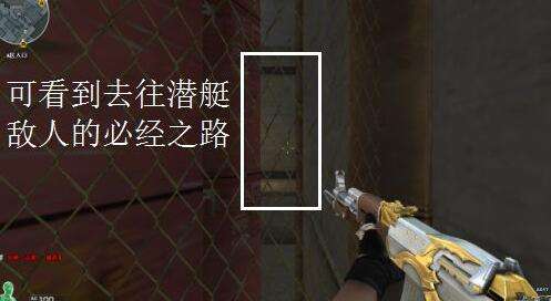当然,选择这个点位的原因之一除了它能方便杀敌以外,还有就是这个点位十分安全,特别是平台上的保卫者在发现C4已经安放后,他们第一时间的预瞄点肯定是潜艇下的包点位置,而不会在意红色方框的位置!