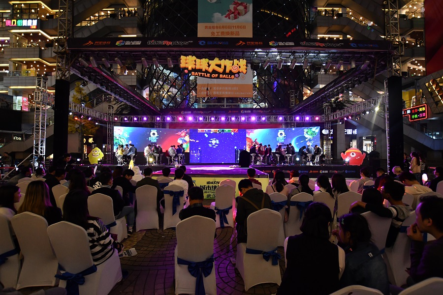 《球球大作战》城市挑战赛10月28日强势登陆武汉火爆商圈光谷广场现代风情街,本次比赛吸引了武汉地区众多球球玩家,来现场观摩参赛,下面就让我带大家来领略下球球大作战城市挑战赛武汉站的独特魅力!