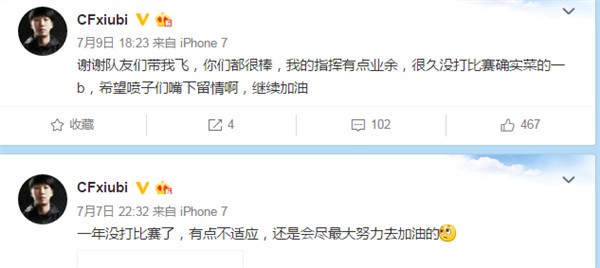 时间是一把刀,把每个人都伤的不浅。看过xiubi的微博发过的照片,脖子上插着银针不仅倒吸一口冷气。长时间的昼夜颠倒,一坐便是一天。xiubi的职业病也是越来越严重,我们见过职业选手台上的辉煌,可是谁看得见他们台下的努力。队友还在,你又怎么能老?不知道2018的赛场是否还能再见到xiubi的身影。但是我相信有CF的地方就一定会有xiubi的存在。