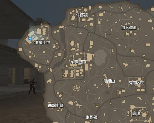 我们可以从直升机俯瞰图中大致看到整个“军事营地”资源区的样貌,而仔细观察的小伙伴可以看到,在这张俯瞰图右边的区域,有一道深沟,而这个方向是我们“军事营地”资源区去往“建筑工地”资源区的必经之路。