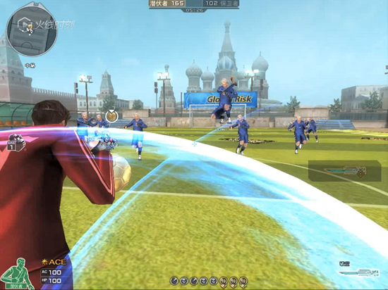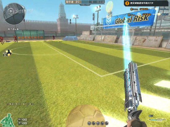 当在对方球场上掌控者球时,由于在游戏中没有越位这一限制规则,杀完敌人找时机钻空子,直接运球跑到球门里面,也算进球成功,而且比射门踢球更加准确一些。