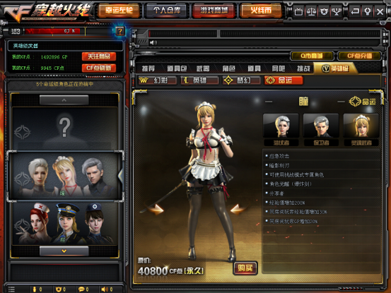 普通角色,也就是那些没有任何加成或者特殊属性的角色,比如曼陀罗、潘多拉猎狐者等,这也是玩家们拥有量比较多的角色,女角色、不贵而且永久,这些角色在活动尚未像今天这样如此疯狂的年代,是很多玩家喜欢的角色。