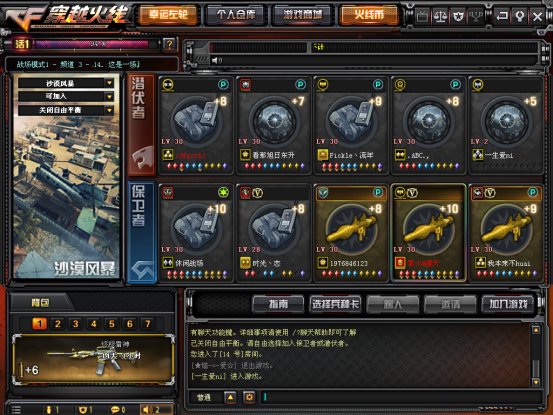 进游戏首先进入战场模式的服务器,选择一个人数还算是比较多的频道点进去。这类玩法的房名毫无特征性,但进入房间映入眼帘的却是严重的等级差距。不仅仅是兵种卡以及战场模式等级的差距,还有就是新手玩家与老手玩家的差距。为什么要讲这样的差距呢?这个问题我们到后面再进行详细说明。选兵种卡先用自己没有怎么强化的兵种卡去掩一掩敌方的耳目,等别人全部进入游戏,自己换上最擅长兵种。
