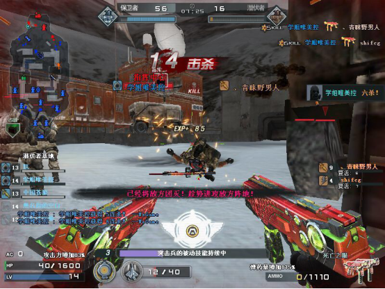 “虐菜玩法”的含义想必大家到现在已经清清楚楚了,菜指的就是游戏中的新手,虐菜就是享受虐杀新手的快感。所以到了后期,不管是一个普普通通的火箭弹,C4炸弹,还是一发弩箭,就算打偏一点,也能达到秒杀的效果。游戏的中后期,没有虐菜者再会试着打掉指挥中心,结束这场无聊的游戏。他们见谁打指挥中心就踢谁,自己却放肆的享受的杀戮新手的快感,尤其是屏幕上不断浮现的“kill them all”和“已将敌方团灭”的字样。