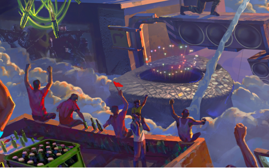 彩蛋3——神舟飞船升天:在图片的右侧可以看到一对情侣在观看神舟飞船升天,这狗粮撒的可以说很有意义了。