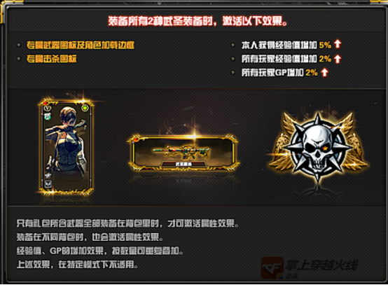 就像我们见到的这样,武圣成套装备后,不仅有专属的角色加载边框,还有专属的杀敌图标,如此吸引人的套装效果我想没人会拒绝吧。所以说,完整的套装不仅仅只是两款武器外观像,彼此之间能够产生联系,能够触发不同的效果,这样才算是完美的套装嘛,而武器套装进化到武圣这里也并没有停止……..