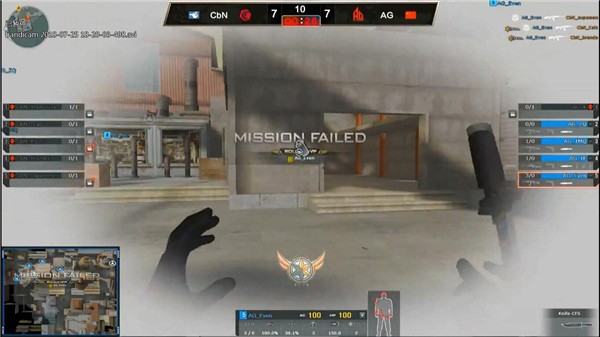 AG和CBN战队打得什么胶着,比分也是咬的很紧,前十四局打成7-7,来到第十五局,开局后,担任潜伏者的CBN战队的req、Kaiz以及xfamousx三名选手在B通道外的铁丝网处卡点,但是没有想到的是,空间太狭小,人又多,结果出了意外……,req和Kazi粘到到了铁丝网上下不来了,无奈之下,只得退出游戏重新连接。AG战队的绝迹表示:WHAT?什么情况?