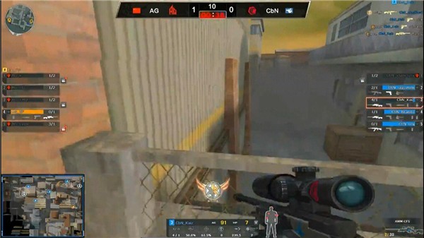 双方在港口这张地图上展开激战,上半场由AG战队担任潜伏者。来到第二局,CBN战队的Kaiz手持狙击在中路击杀了绝迹,随后中路的林肯在中路将xfamousx击杀,此时中路的狙击手的Kaiz应该选择撤退,但是他并没有,而是大胆的切出副武器去抓中路的林肯,在中路,直接用副武器将林肯和even击杀,Kazi也是残血,他不仅没有选择后撤,而是手持狙击将A道的宠儿击杀,完成了四连杀,以一己之力帮助队伍取得比赛胜利。
