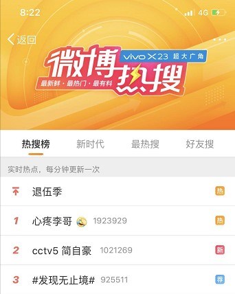 新浪微博热搜榜单霸占前2,前10个话题中有3个与夺冠相关,热搜榜超过10个热词;