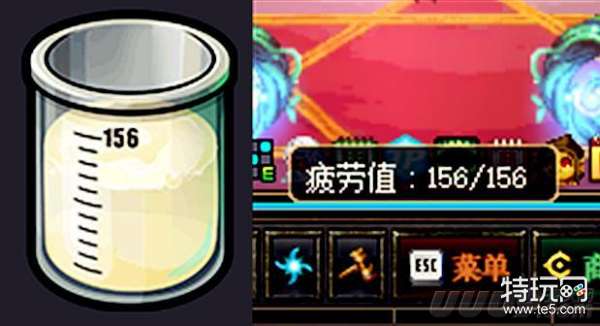 第三天是一个瓶子里装着白色的液体,瓶子的容量是156,而疲劳值的设定也是156,因此第三天可能是疲劳药水。