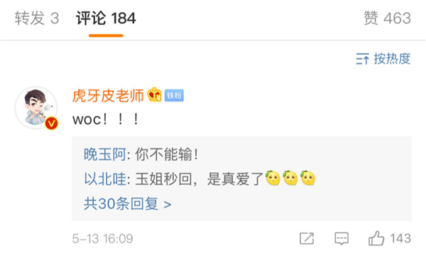 一向勤洗头的骚皮皮在看到这条微博以后,立马点了赞,竟然有如此丧心病狂的挑战,那么不挑战岂不是真的证明自己菜了?于是骚皮皮还第一时间在该挑战下留了言,兄弟晚玉更是秒回骚皮皮,就这样,晚玉和骚皮皮被粉丝视为“真爱”般的一对,同时,这也说明了DKG的兄弟情深,是兄弟就要同甘共苦,精英要一起当,头也要一起不洗,变菜就变菜!