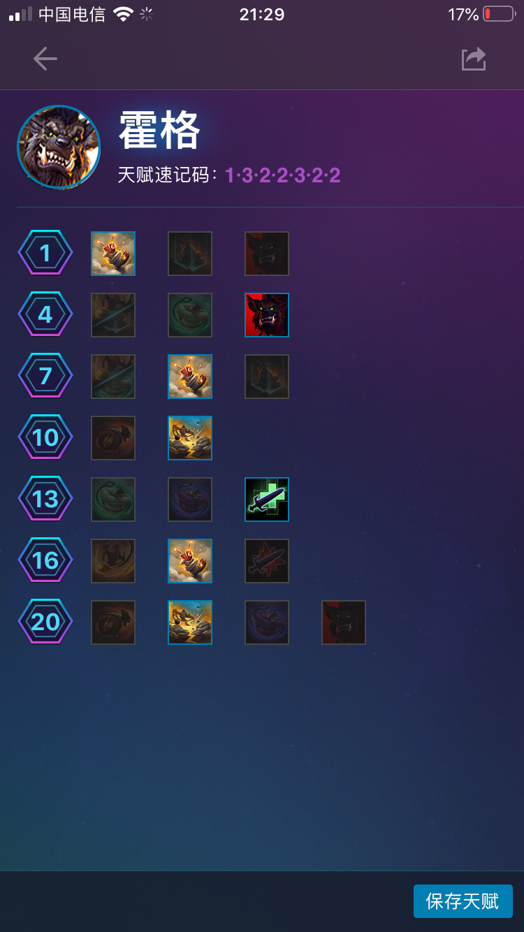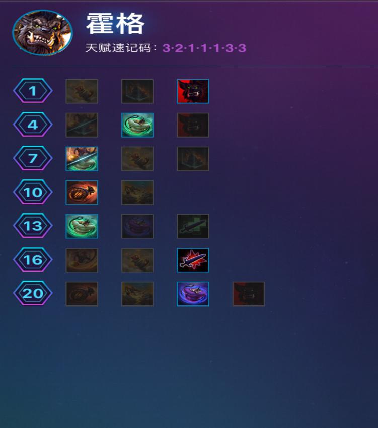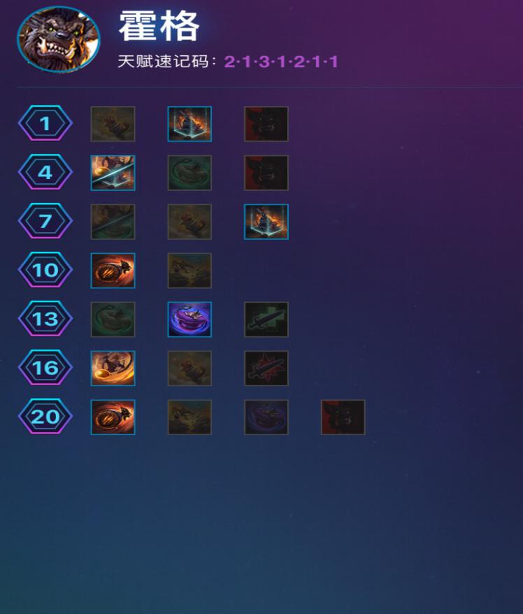 这套天赋能够让霍格变成一个功能性的英雄。会常常利用自己的特质去帮助队友创造地形,给对面挂上减益效果的一套天赋。