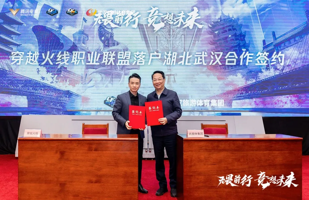 发布会现场,湖北文投公司代表省委宣传部与腾讯电竞正式签署了《关于电竞产业发展的战略合作框架协议》,随后,武汉市旅游体育集团和腾讯完成穿越火线职业联盟生态落户湖北武汉项目的发布签约。