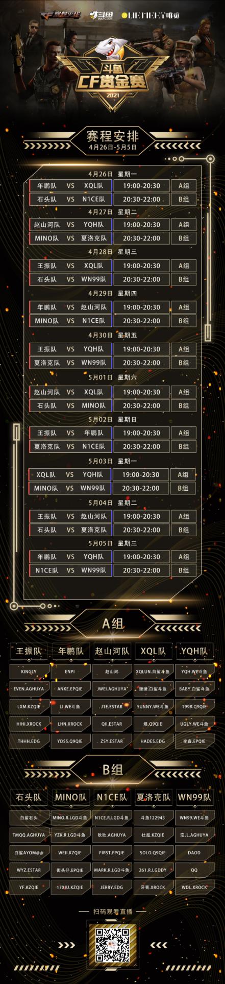前三天小组赛的精彩战斗结束后,今晚七点将迎来小组赛第四天的赛事,A组在年鹏队和赵山河队之间展开较量, B组将在mino队和n1ce队之间展开较量,各小队将更进一步向冠军冲击,究竟谁能旗开得胜夺得冠军,我们拭目以待。对于想了解后续赛程安排的小伙伴可查看下图,锁定斗鱼直播平台(房间号:9767014)看各站队的强强对决吧。