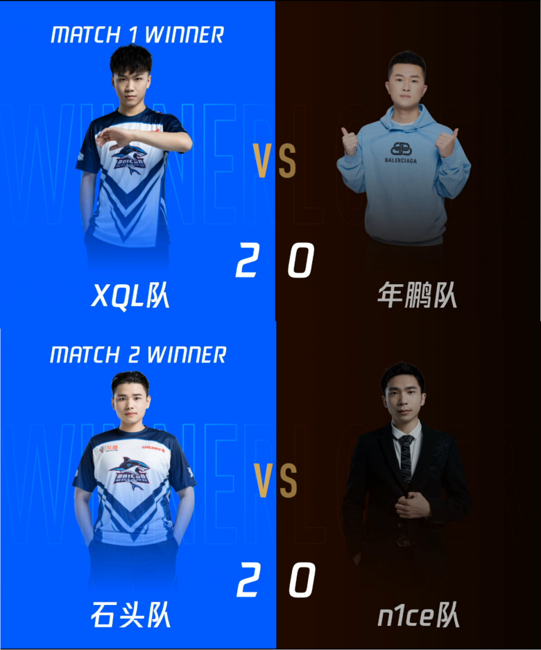 首场比赛中,XQL队对阵年鹏队,作为比赛首秀,双方都是使出了浑身解数,战况一度胶着胜负难料,但最后XQL小宇宙爆发扭转战局夺得胜利,年鹏队遗憾落败。而当天的第二场比赛则是石头队以猛烈攻势碾压n1ce队,最终以2:0夺得胜利。