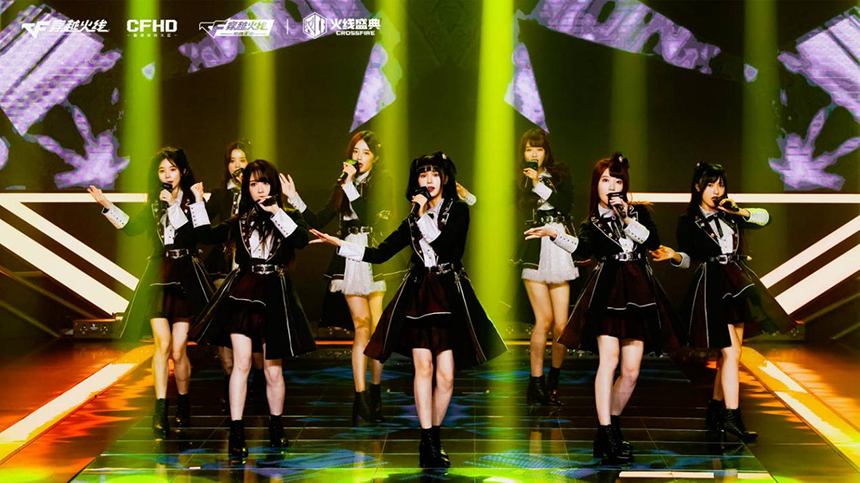 除了化身“火线练习生”入驻CF世界,在火线盛典中, AKB48 Team SH的唱跳表演也带给了CFer很多惊喜。AKB 48的成员们,不仅外表青春靓丽,唱跳舞台也非常精彩。《River》、《初日》、《闪亮的命运》、《迎向未来的风》四场实力表演,元气满满、甜度拉满,让许多线上观众赞不绝口。值得一提的是,AKB48 Team SH将《穿越火线》的“刚”pose融入到了舞蹈中,直击每一位CFer的内心。