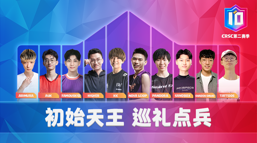 与CRSC第一赛季不同的是,本赛季的初始十大天王从海选诞生改为官方直接邀请,让赛事星味再上台阶。在参考了CRSC第一赛季的成绩以及当下选手们的CRL全球积分后,Higher、Nova Lciop、Auk、KK、PANDORA、ARIMURA、SandBox、Shaden Smuki、Famouskid和Tattoos十位亚洲顶尖高手应邀参赛,组成初始十大天王。本周末两天,他们将带来十强排位赛的激烈争夺,决出首周最强天王的归属以及初始十强的排名。十大高手各个名声在外、来头不小,让本赛季的比赛一上来就是神仙打架、巅峰对决,苦等两月的CR观众们必将大饱眼福。