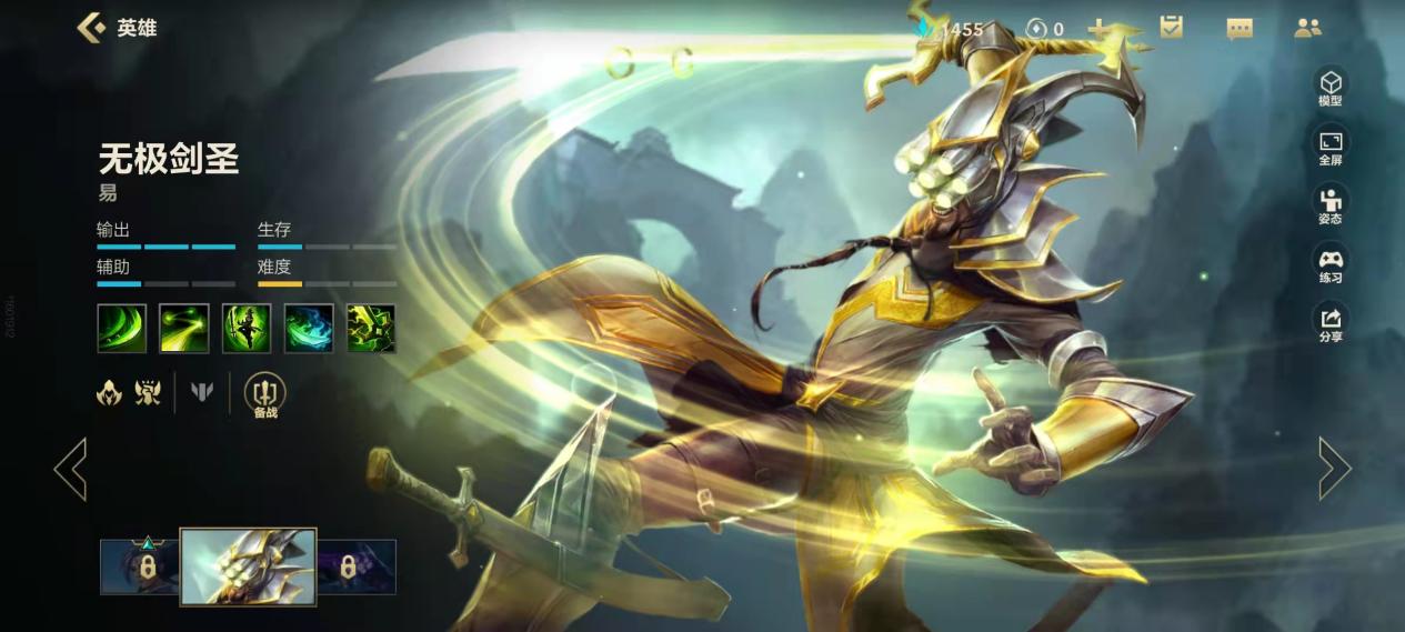 剑圣是联盟里的经典老牌打野,在手游也是第一批上架的角色。人物的操作难度依旧非常低,甚至很多从来没接触过联盟的玩家也能轻而易举地上手,剑圣的玩法也只需要简单地利用普攻和Q来收割即可,在刚进入手游时用剑圣来熟悉操作是再合适不过的选择。