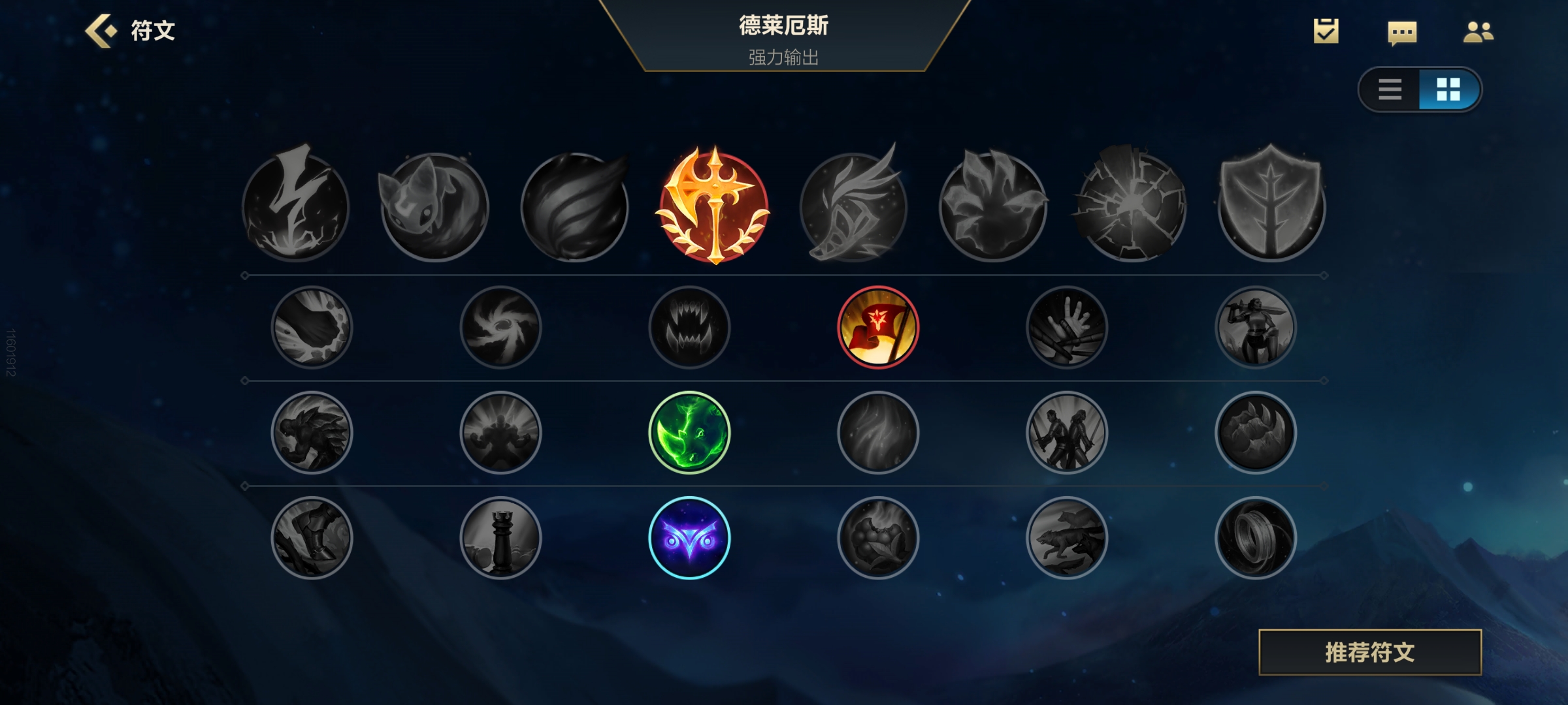 Q技能是诺手的核心技能,外圈伤害既能打出高额的爆发AOE,又能给自身提供治疗效果,在极限反杀时经常要用到。此外,Q技能也可以作为消耗技能使用,不断地压制敌人的血线。W技能加点只能加快冷却时间,副加点收益在前中期不高,所以副加点E技能让控制技能更快转好,面对各种特殊情况时才比较好控制住局面。