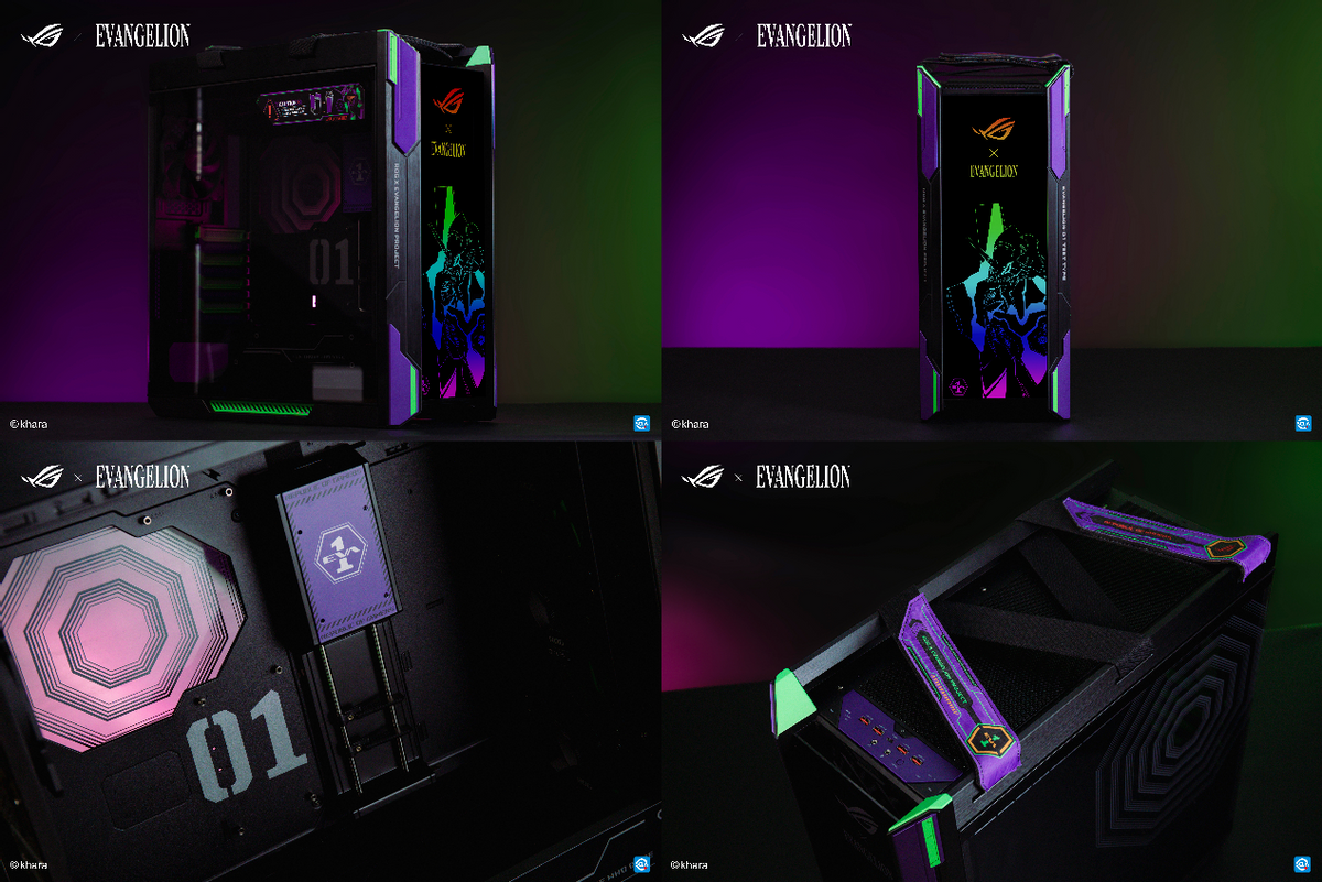 首先介绍的是整体外部装甲部分——ROG STRIX HELIOS 太阳神机箱 新世纪福音战士丨限量版。其外部装甲以ROG太阳神为主体,辅以EVA初号机经典紫绿配色,将初号机形象整体展现于前面板,顶部绑带还特别采用初号机紫色为主色调,并印有“ROG x EVANGELION PROJECT”字样和EVA 01 图案。