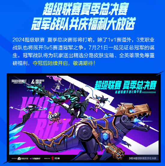 7月21日当天,2024英雄联盟超级联赛夏季总决赛将正式打响,召唤师们除了将见证冠军战队站上巅峰之外,还可在夺冠后领取由冠军送出的精选分路宝箱皮肤、全英雄限免等福利。