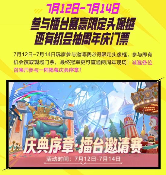 另外值得一提的是,《英雄联盟手游》2周年庆典暨超级联赛夏季总决赛将于7月20日-7月21日于四川省体育馆开启,除了精彩绝伦的赛事内容,更有别面生开的明星表演赛和特别节目,福利抽奖更是加码出击轮番来袭!即日起到7月14日,参与端内庆典序章•擂台邀请赛必得限定头像框,还有机会抽取门票参直通2周年现场!