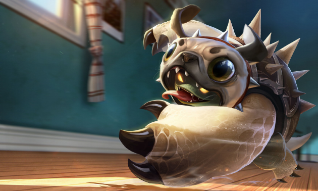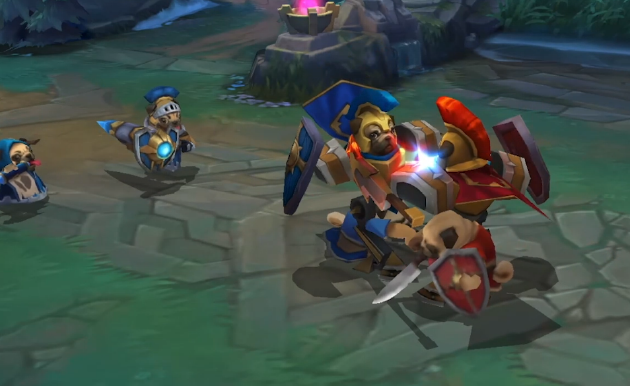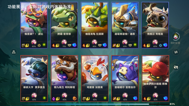愚人节版本最直观的狠活,莫过于“龙龟联盟”的全面接管。在游戏端内,部分英雄们的海报发生了画风突变,竟然都顶上了拉莫斯标志性的甲壳和那双充满“智慧”的眼神!无论是新上线的萌犬克格汪,还是狂炫鸡腿的鸡里奥,无一幸免,全员龟化。